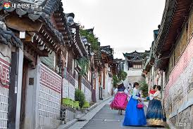 북촌 한옥마을 전통 한옥과 현대 카페 혼합 한국 전통생활문화 체험